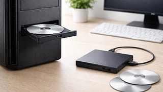 デスクトップパソコンの光学ドライブ選びを解説。内蔵・外付けの違い、DVD/BD対応、互換性チェック、再生ソフトやトラブル対策まで用途別に整理。