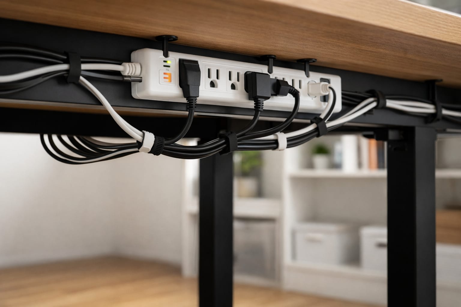 電源タップは定格や安全機能を確認し、発熱しやすい場所に束ねないのが基本です。床置きのPCは転倒やホコリにも注意し、吸気口をふさがない配置にします。雷が多い地域はサージ保護やUPSでリスクを下げます。ケーブルは足に引っかからない動線へまとめ、余った長さは結束しておくと事故が減ります。