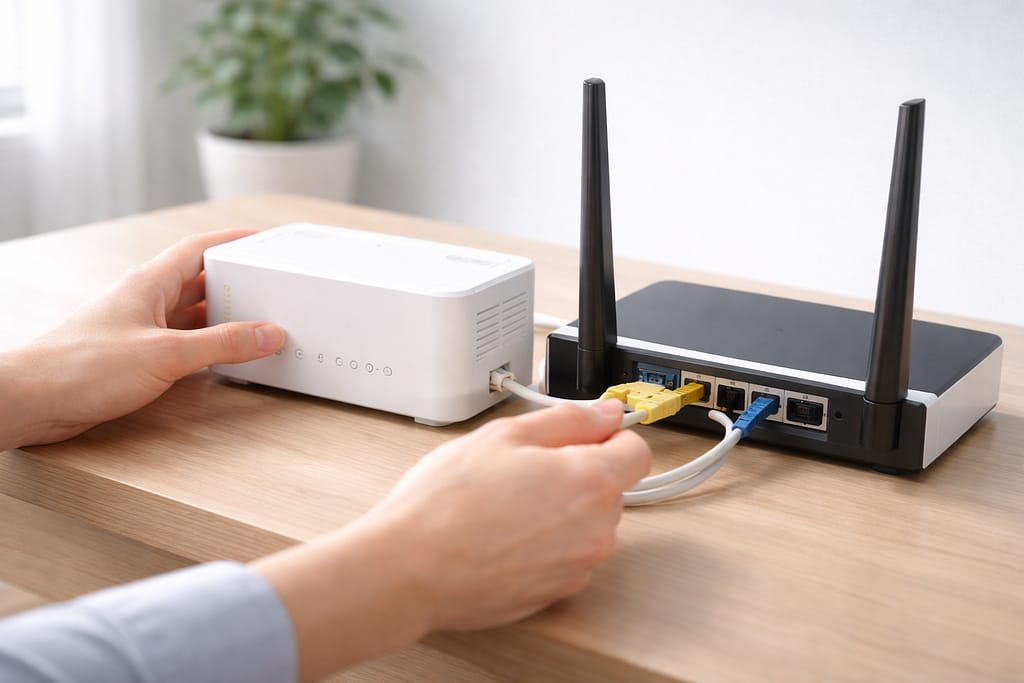 やることは、ONU(または光電話対応機器)とルーターを正しく接続し、Wi-FiのSSID/パスワードで端末をつなぐことが中心です。設定画面を触らずに改善することも多いので、まずは有線直結で速度を測り、その後Wi-Fiの位置調整へ進むと効率的です。
