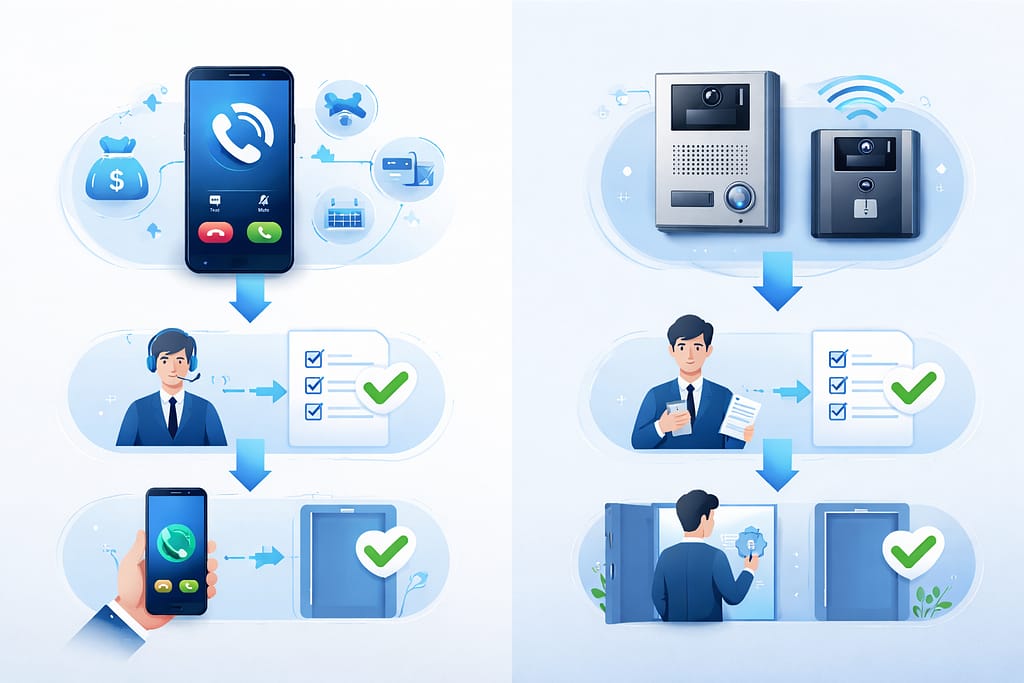 結論から言うと、見分けは「名乗り」と「確認手段」でほぼ決まります。次の項目を満たさない相手は、契約に進まないでください。